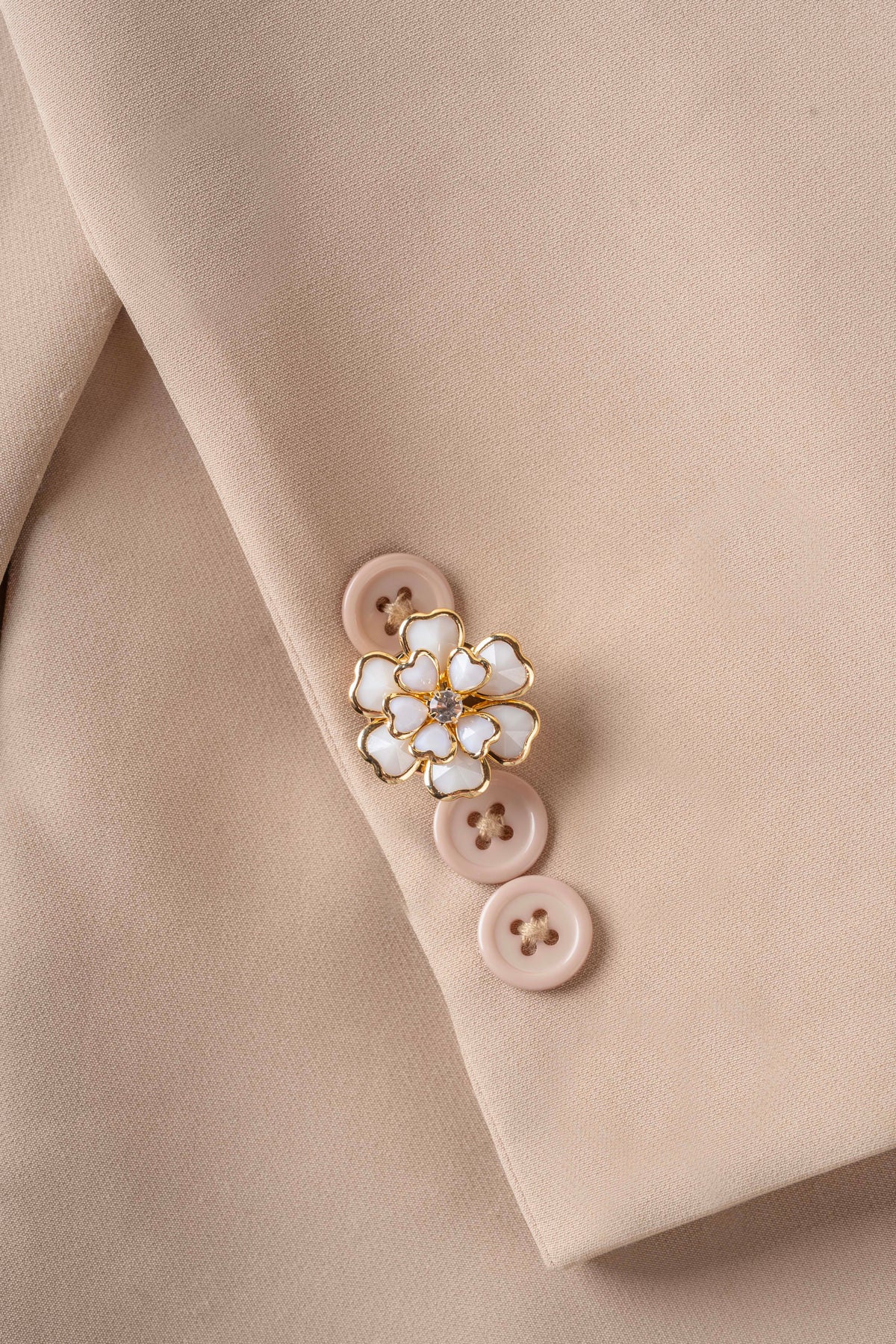 Designed to clip securely over your existing button, Calista transforms a simple silhouette into a confident statement — no sewing or alterations required.