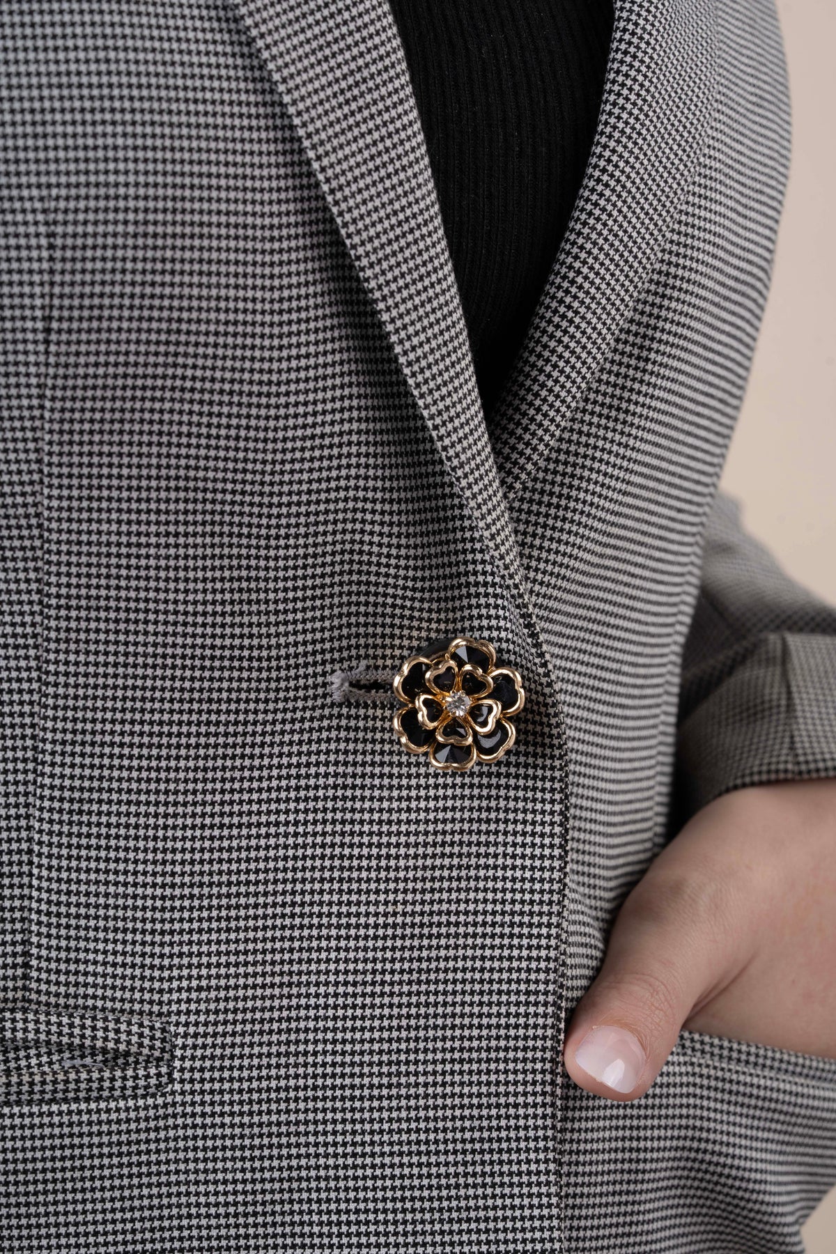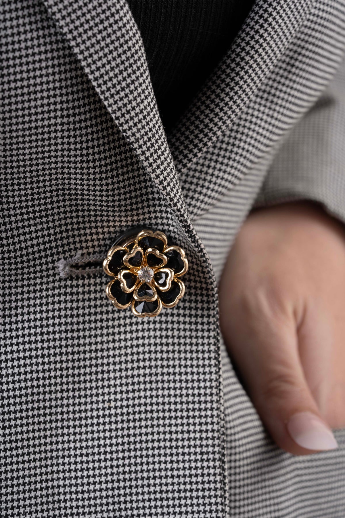 • Black-toned crystal petal detailing