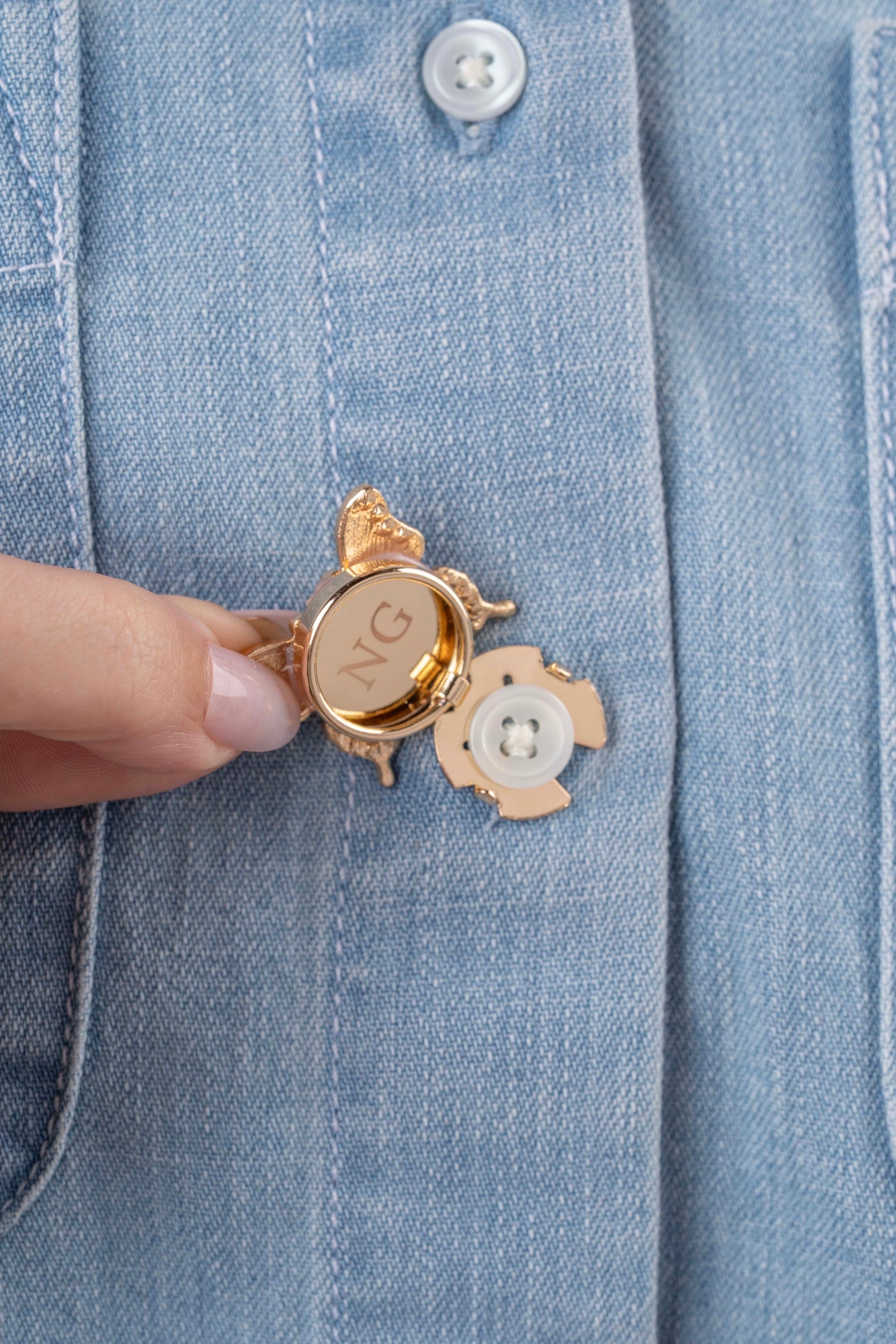 Designed to clip securely over your existing button, Aureva transforms even the simplest silhouette into a polished statement — no sewing or alterations required.