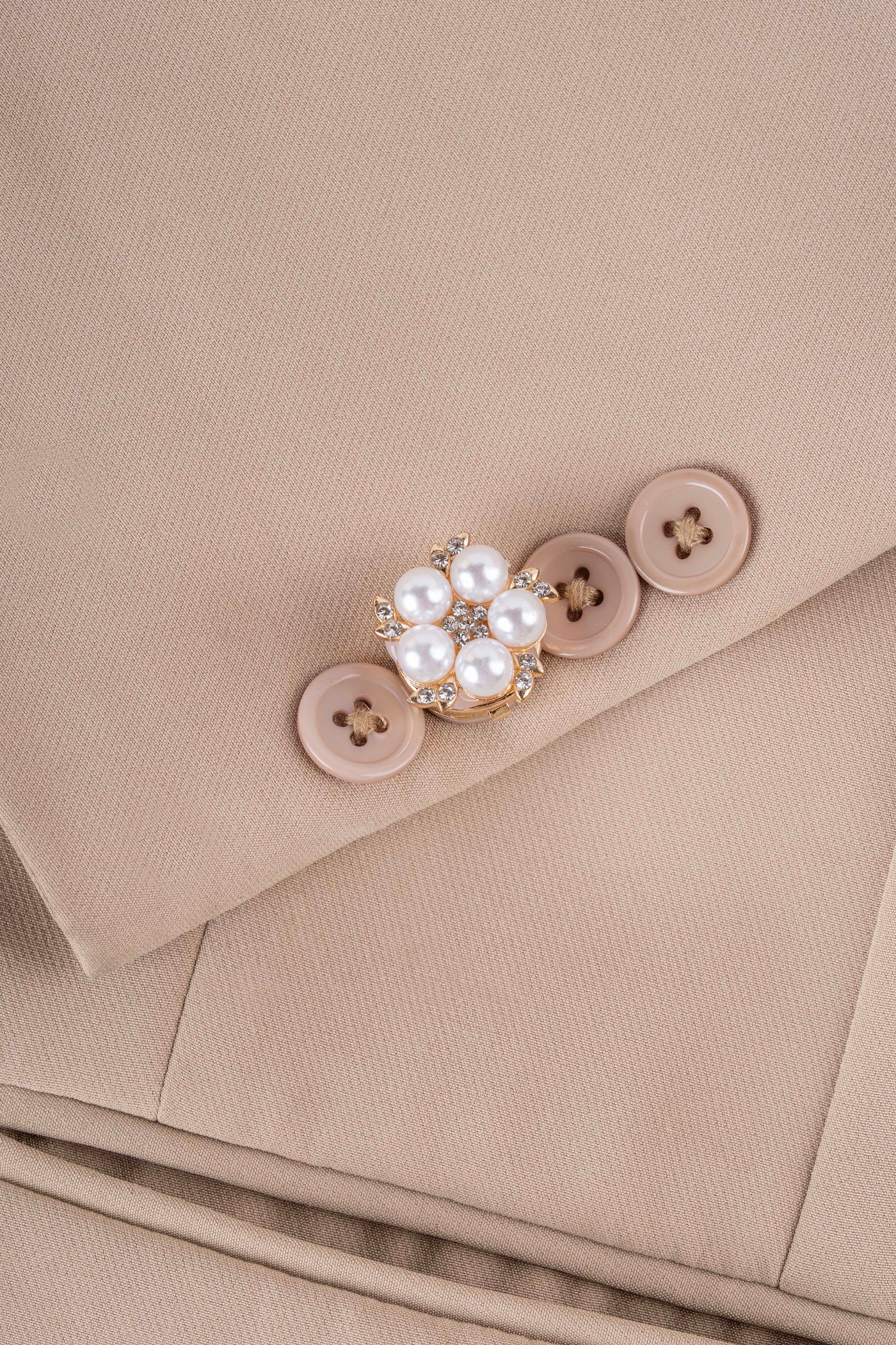 Rosaline is a delicately composed floral button cover featuring luminous pearl accents arranged in a balanced silhouette and finished with subtle crystal detailing. Elegant and compact, it brings refined radiance to any blouse or shirt.