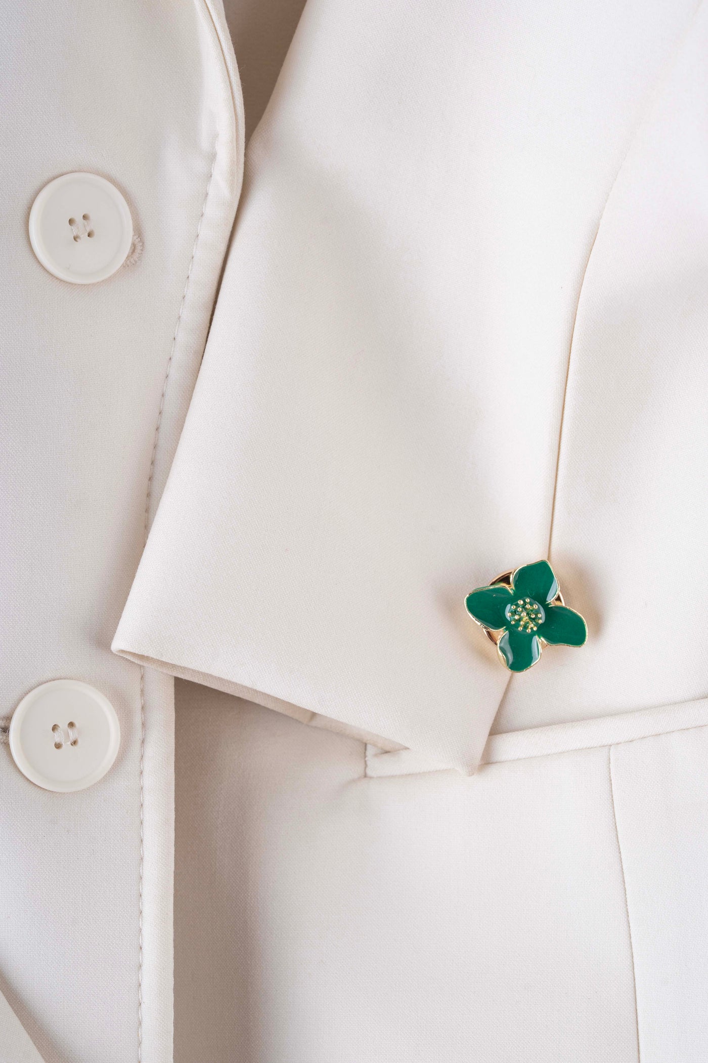 Designed to clip securely over your existing button, Emerelle transforms a minimal silhouette into a statement of quiet luxury — no sewing or alterations required.
