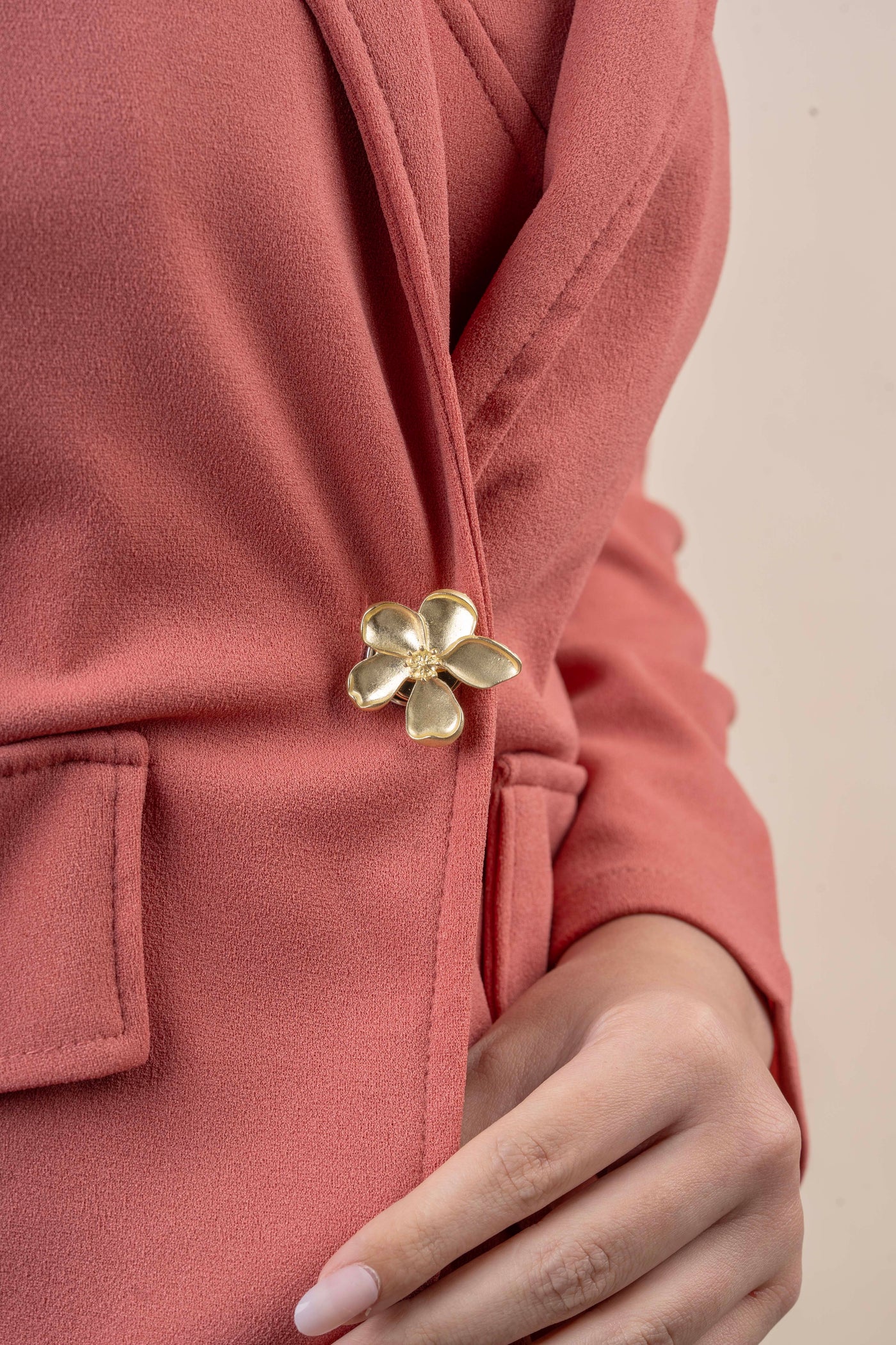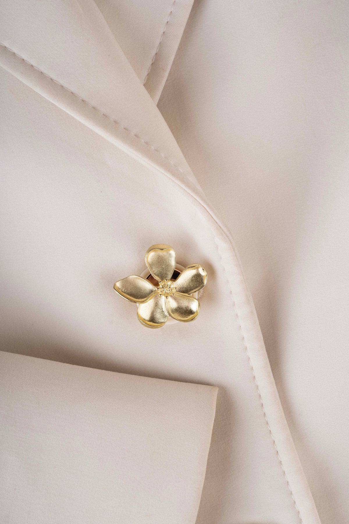 Valora is a sculptural floral button cover defined by its smooth gold-tone petals and refined silhouette. Minimal yet striking, it adds a polished statement to any blouse or shirt with effortless ease.