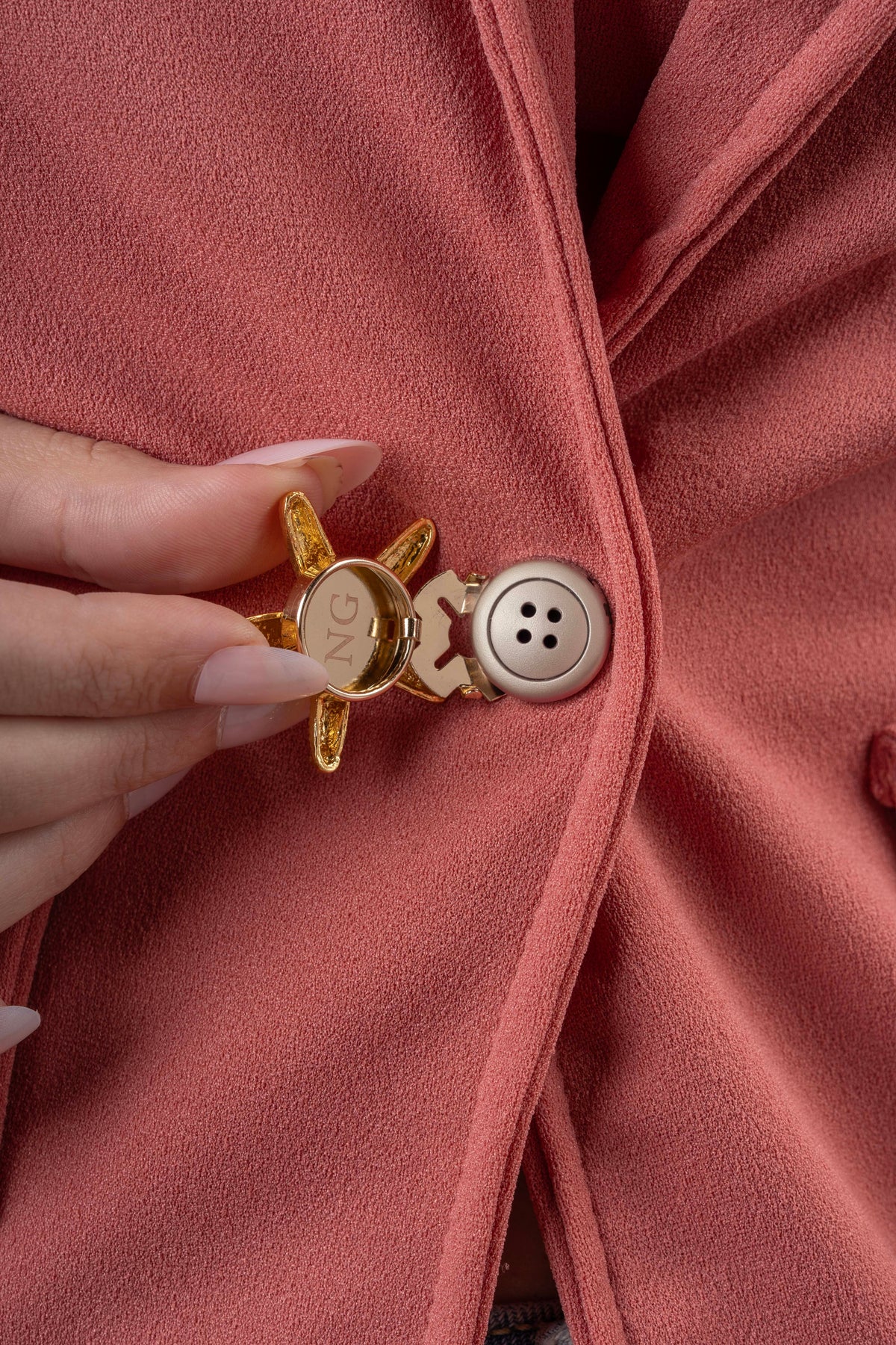 Designed to clip securely over your existing button, Maréa transforms a simple look into a confident statement — no sewing or alterations required.