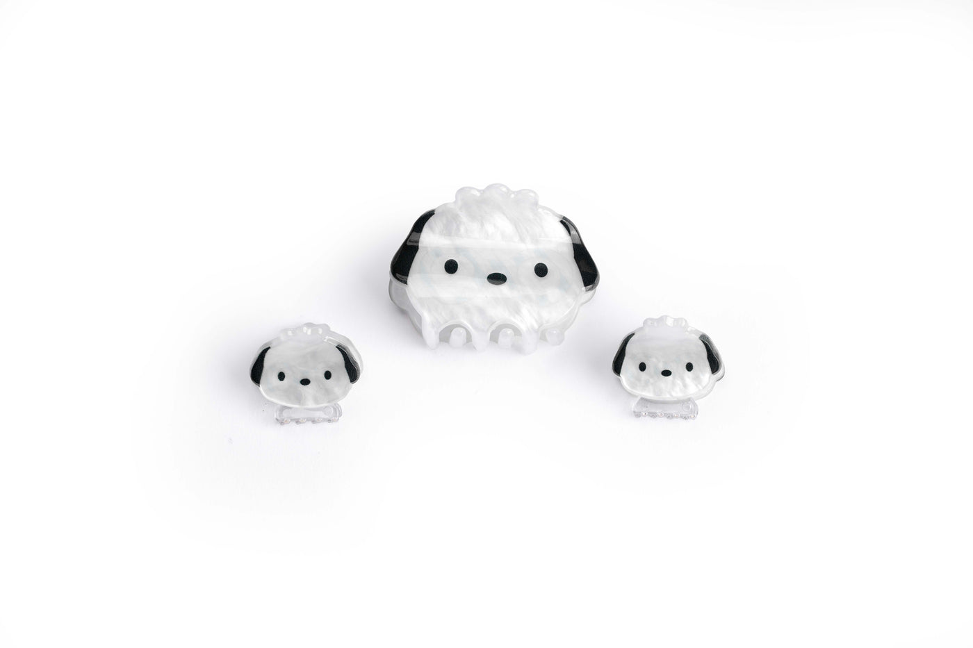 An adorable character-inspired hair claw set featuring a cute puppy face design. This combo includes one medium-sized claw for secure everyday styling and two matching small claws for light hold or accent styling. A playful yet practical set suitable for all ages.