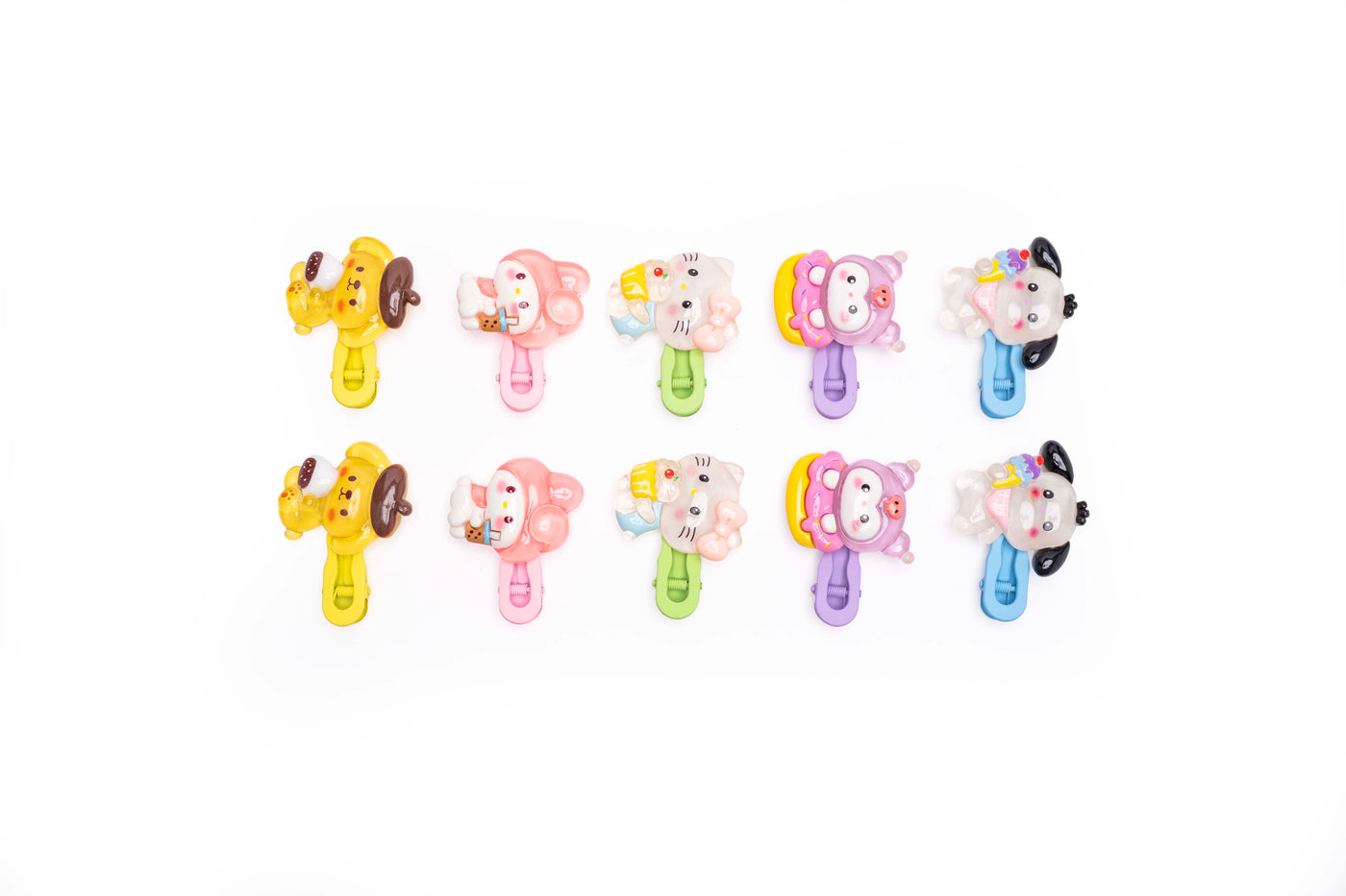 A coordinated set of five medium-sized snap hair clips featuring adorable 3D cartoon character designs. Each clip showcases a different cute animal-inspired character in soft pastel shades with colourful bases, making it perfect for kids’ daily wear, school styling, and gifting.