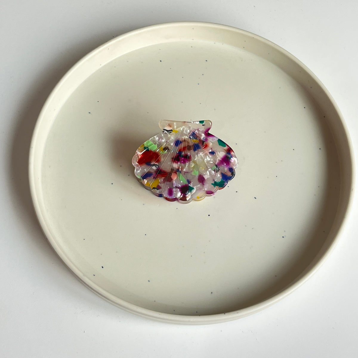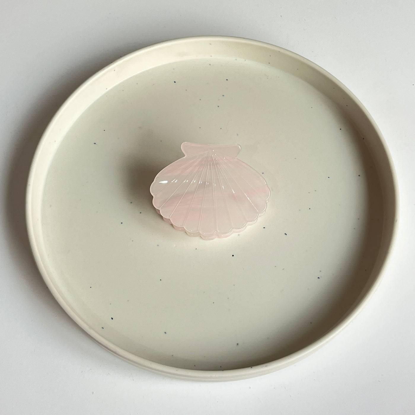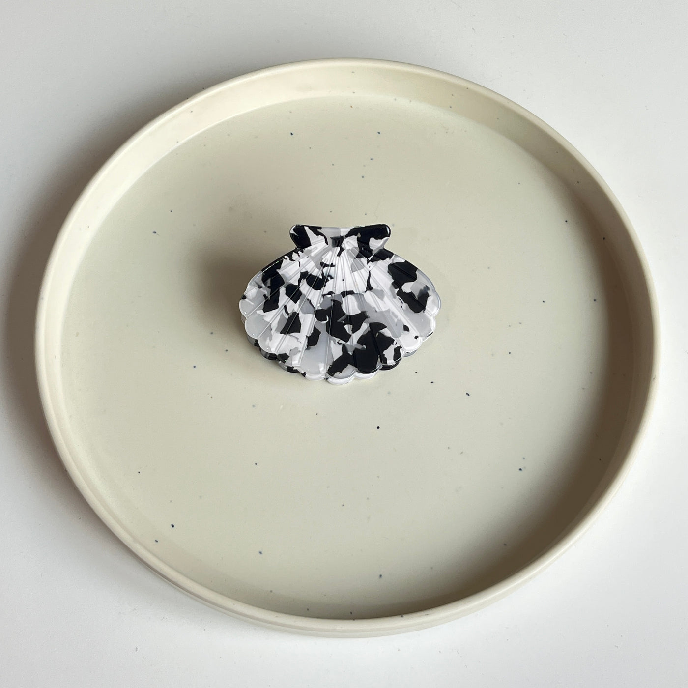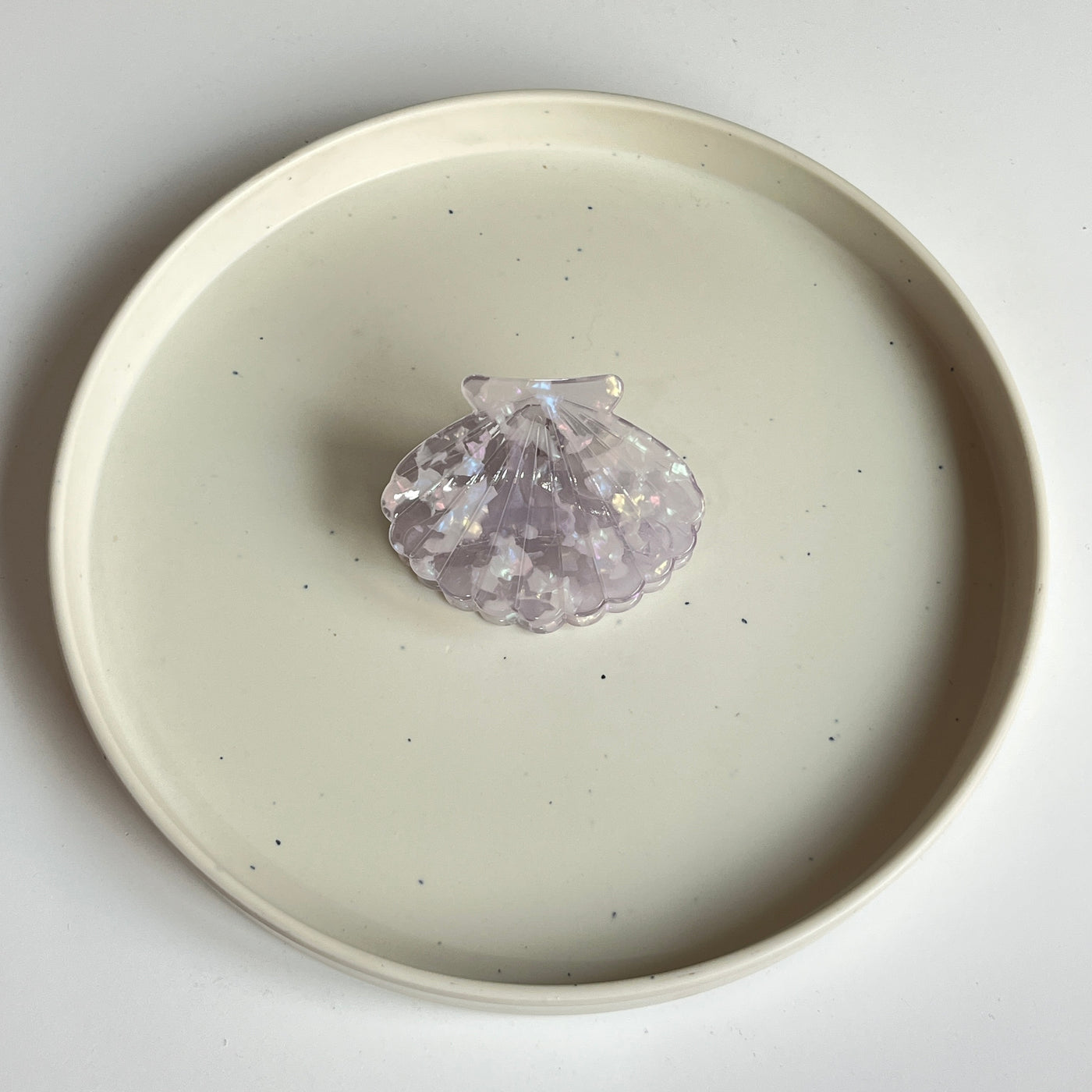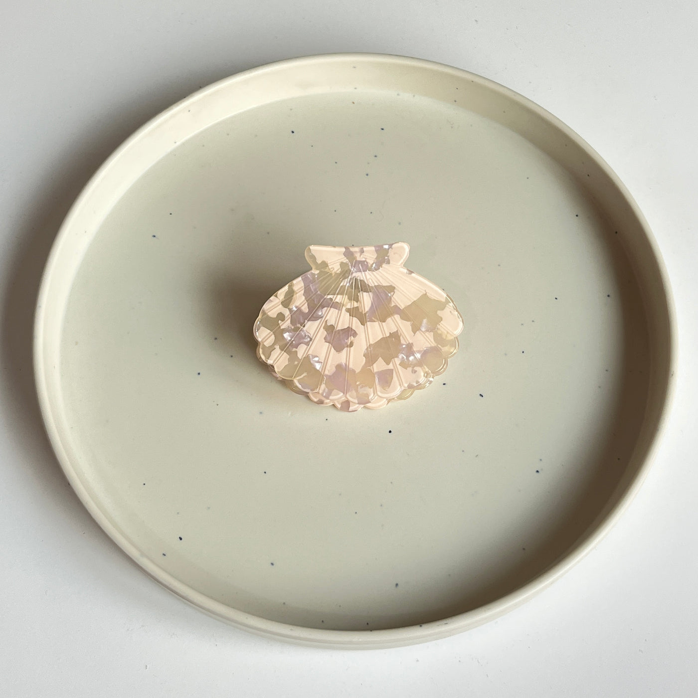A glossy, premium shell-shaped medium claw designed with high-shine marble and iridescent finishes. Lightweight yet sturdy, it adds a polished, elegant touch to any hairstyle while offering a smooth, secure grip.