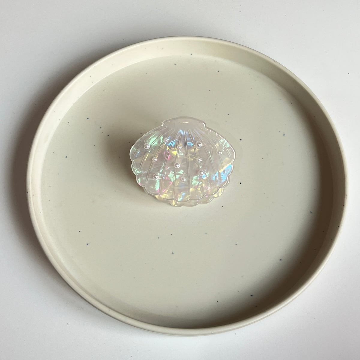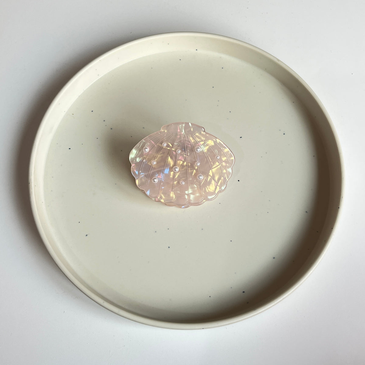 A luminous, pearl-detailed shell claw with a glossy iridescent finish. Medium-sized and lightweight, it adds a dreamy ocean-inspired shine to everyday hairstyles while offering a comfortable, secure hold.