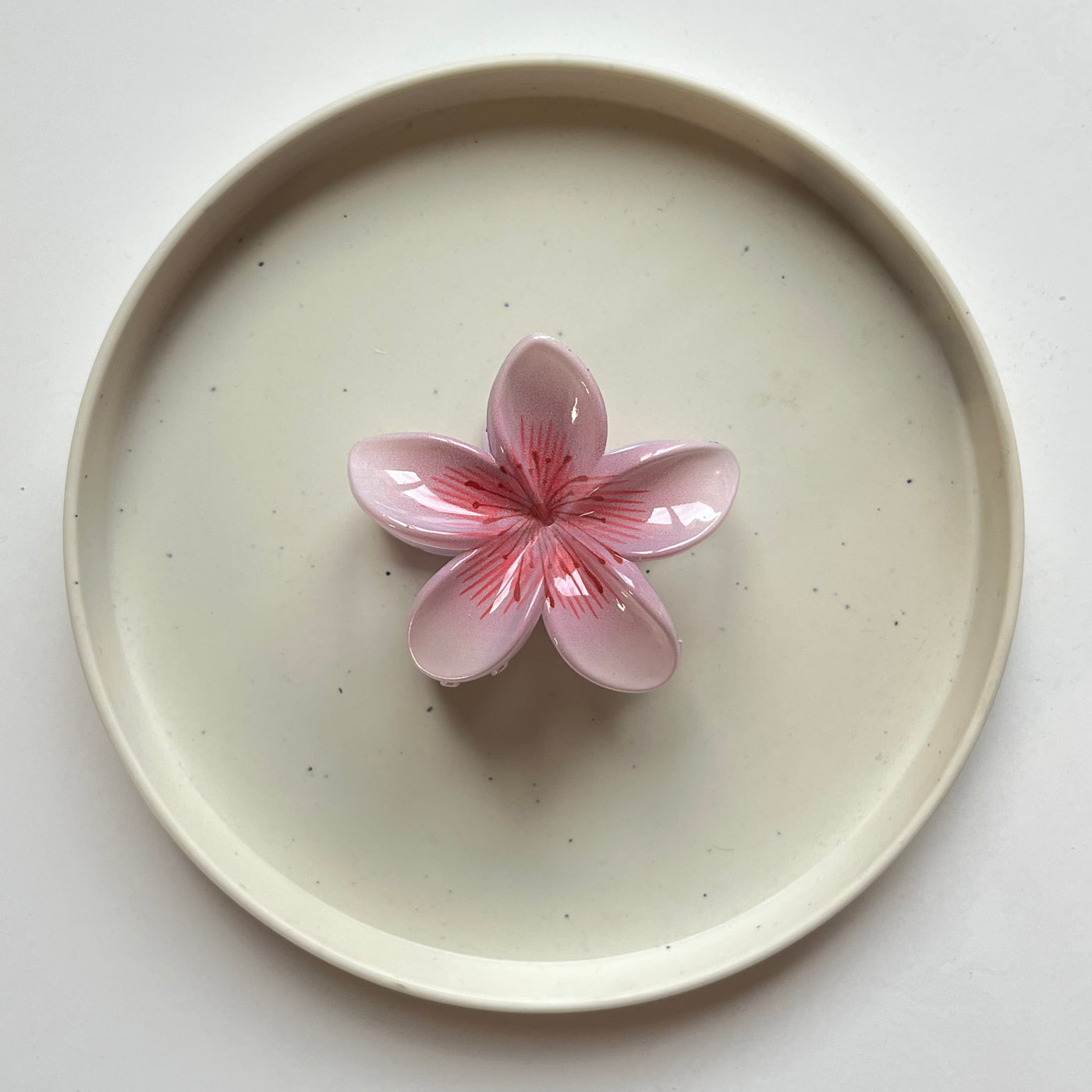 A glossy floral hair claw designed with smooth, rounded petal detailing and delicate inner line accents. The soft colour palette and polished finish make it perfect for everyday styling while still standing out as a statement accessory.
