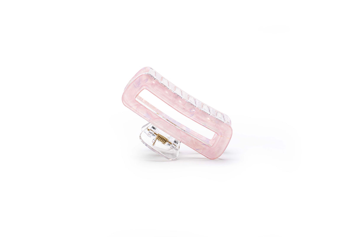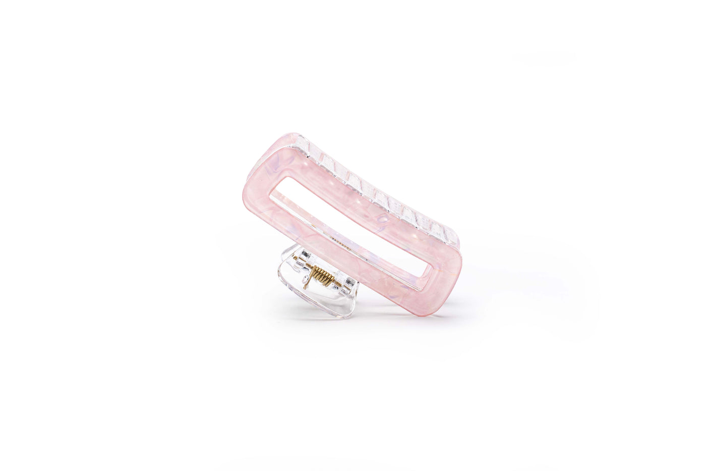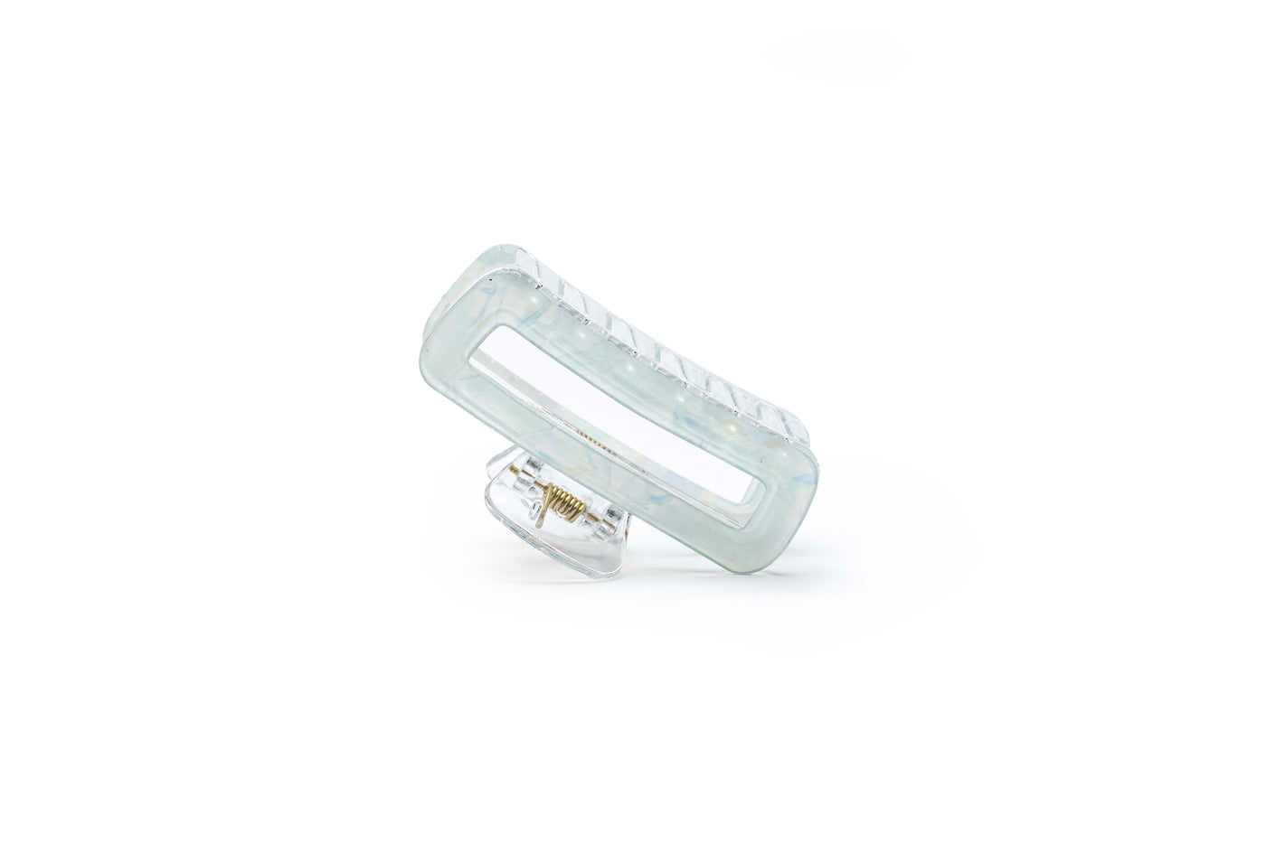 A sleek rectangular hair claw crafted in a translucent crystal-finish design. The minimal open-centre shape and soft pastel tones make it perfect for clean, modern everyday styling while providing a strong and comfortable hold.