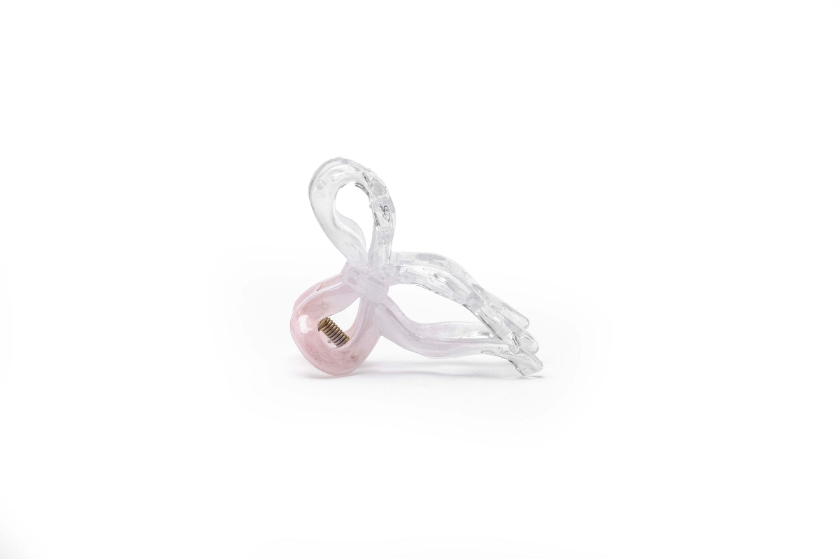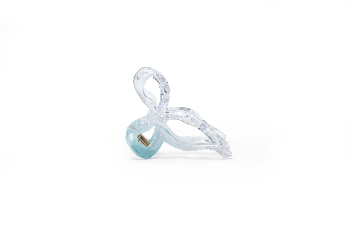 A delicate ribbon-inspired hair claw designed with a smooth twisted silhouette and glossy transparent finish. Lightweight yet secure, this medium-sized claw provides a comfortable grip while adding a soft, elegant accent to everyday hairstyles.