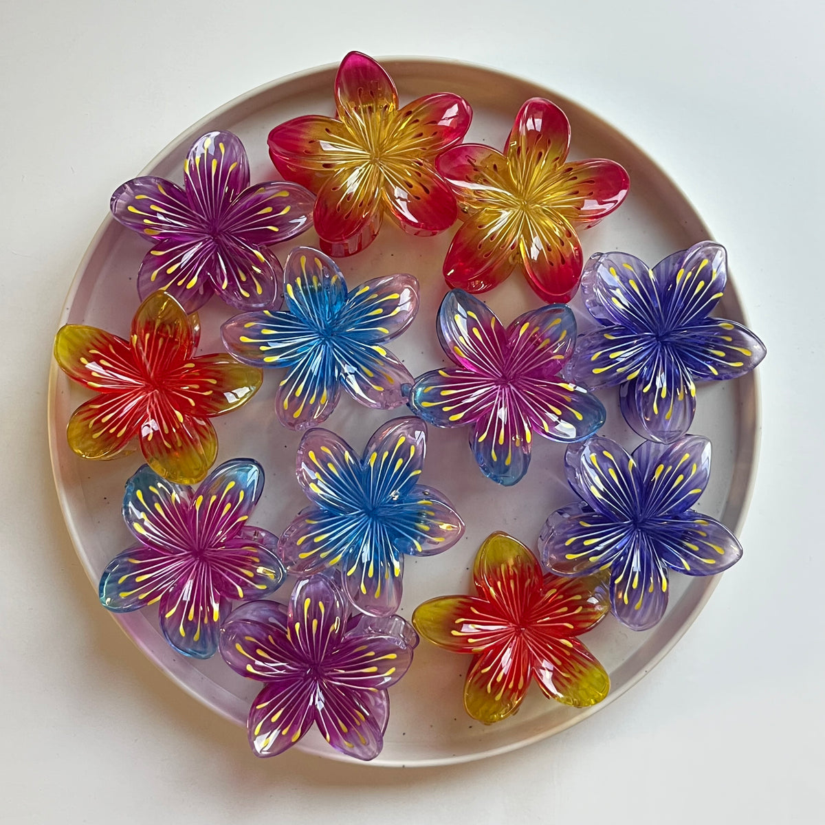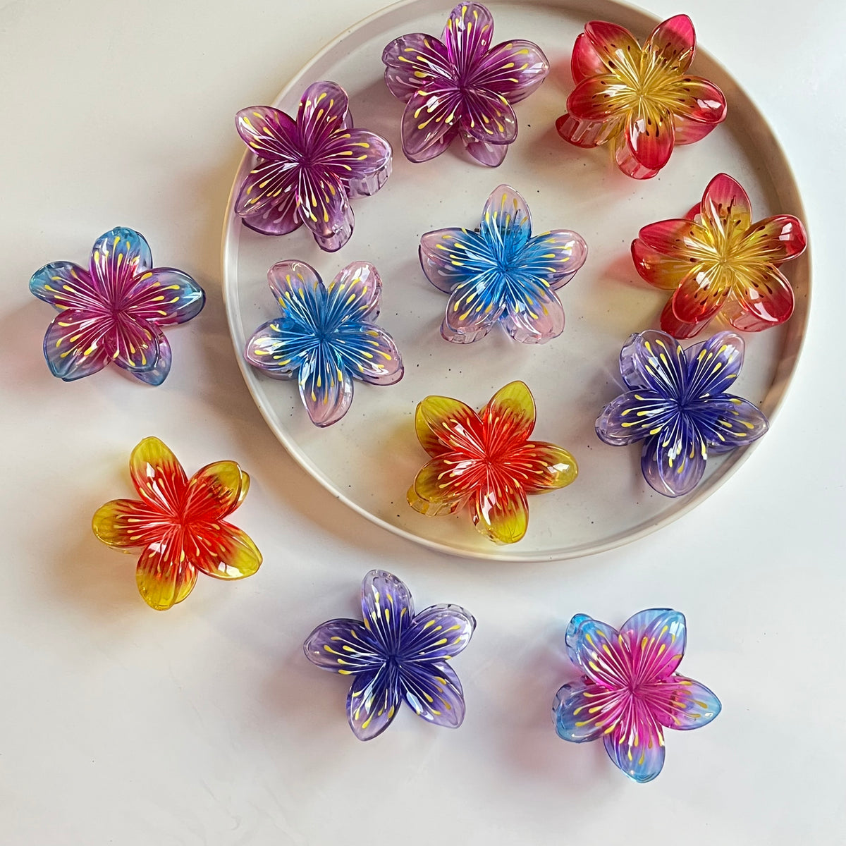 A complete set of twelve large floral hair claws featuring the same radiant translucent bloom design in assorted colours. Perfect for bulk styling, gifting, or curated collections with a uniform floral aesthetic.