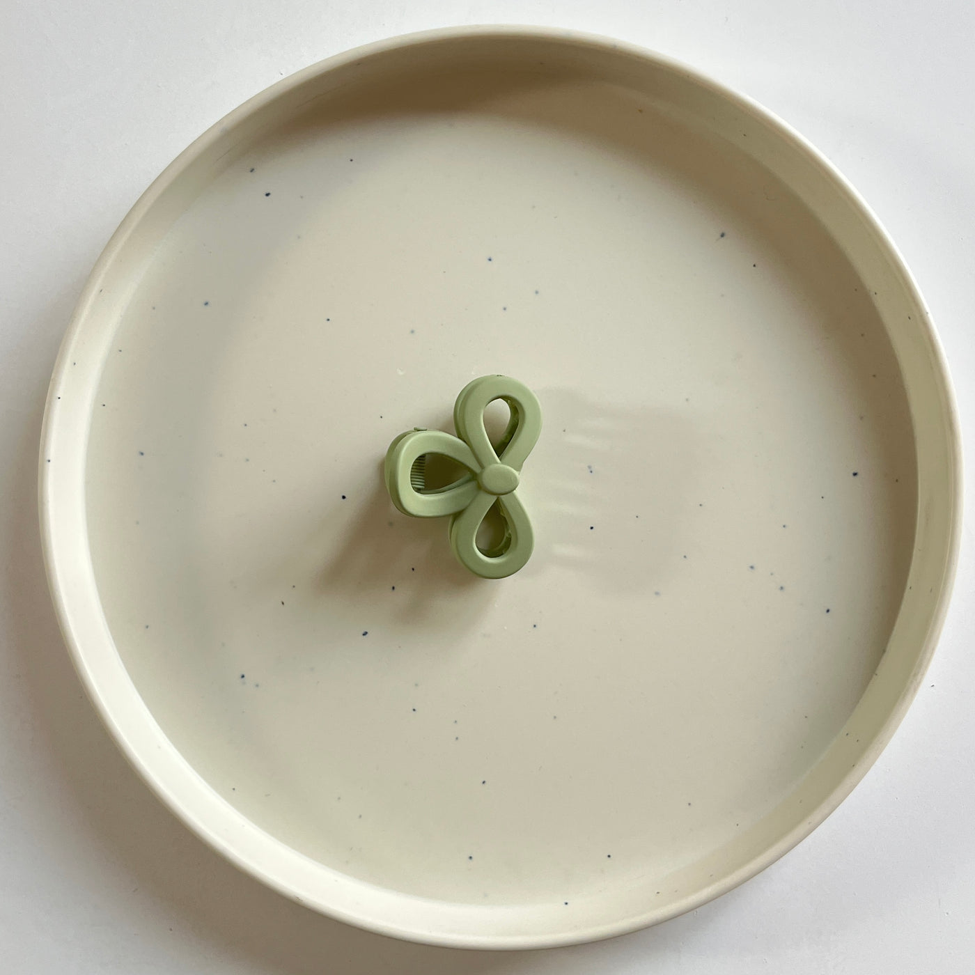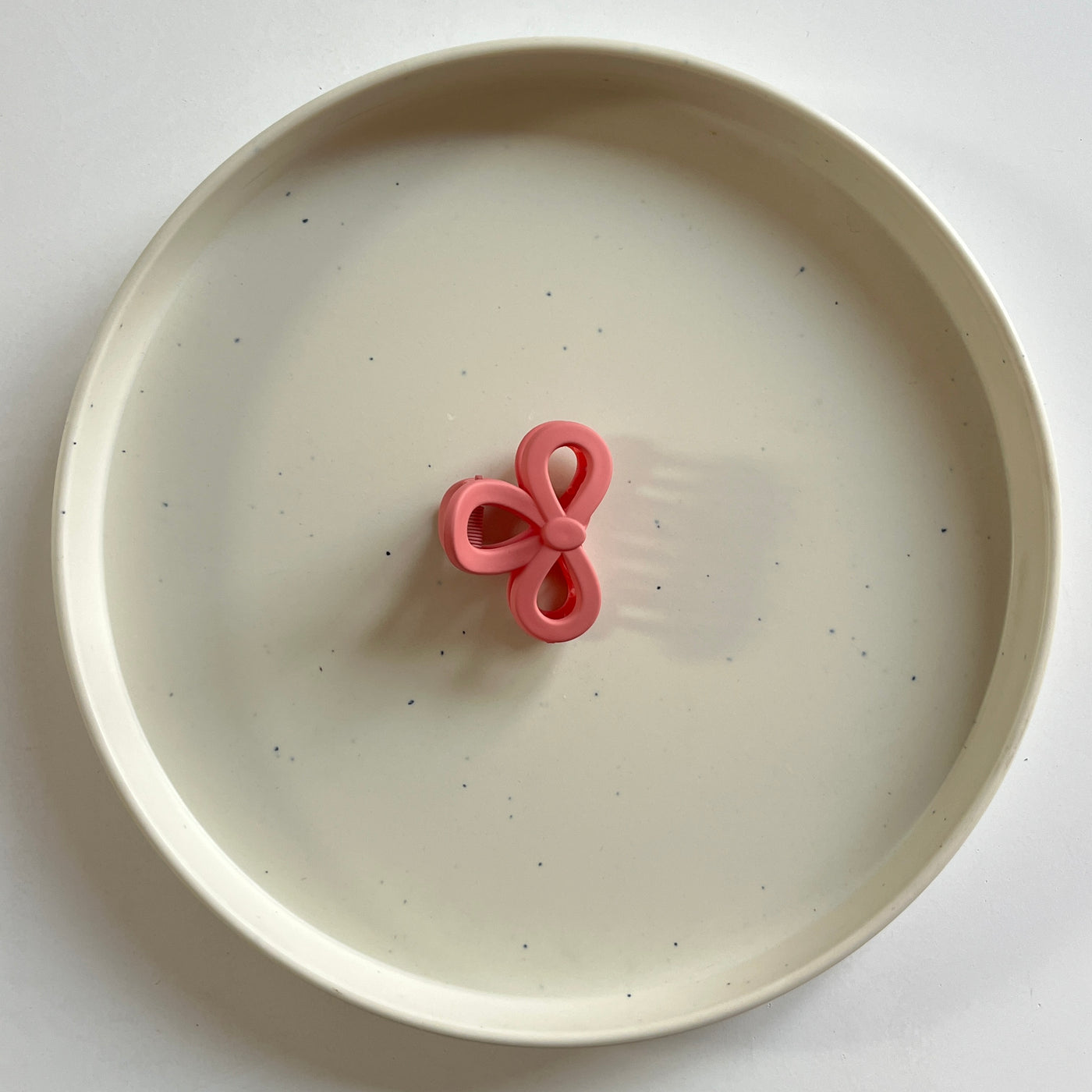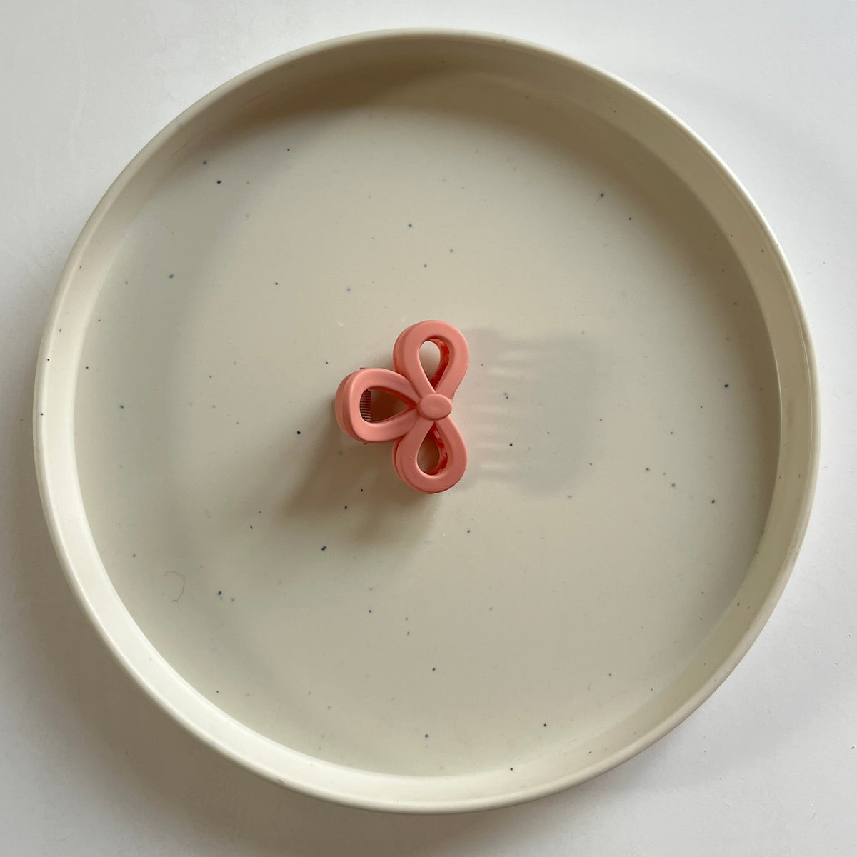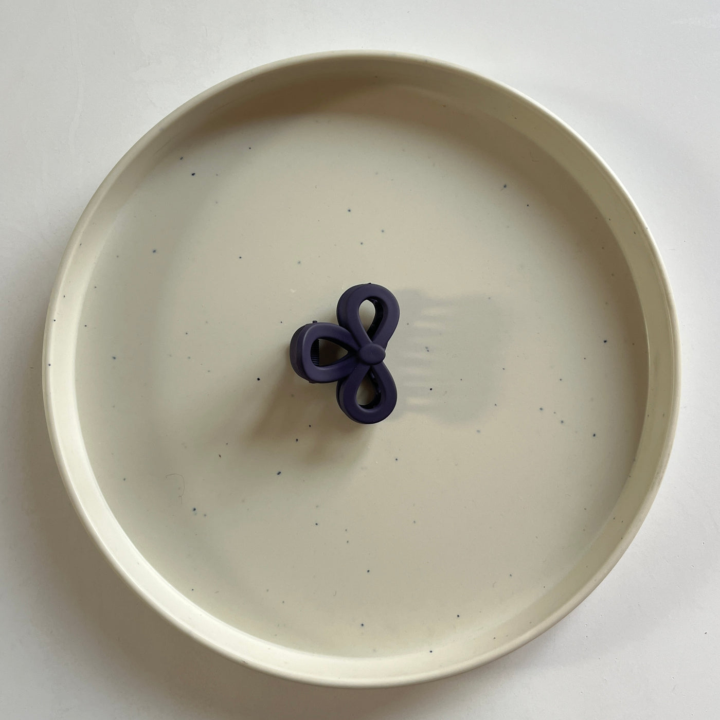 A bow-shaped hair claw with rounded loops and a smooth, compact form. Lightweight and easy to wear, it sits comfortably in the hair for simple daily styling. Designed for everyday use, it suits casual looks and neat, minimal hairstyles.