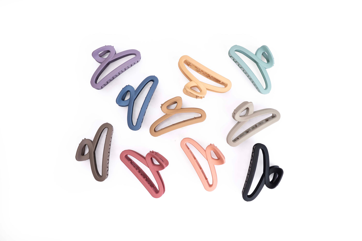 A coordinated set of ten medium-sized loop-style hair claws in soft matte tones. Featuring a balanced mix of neutrals and pastels, this set is ideal for daily wear, gifting, or creating a versatile hair accessory collection.