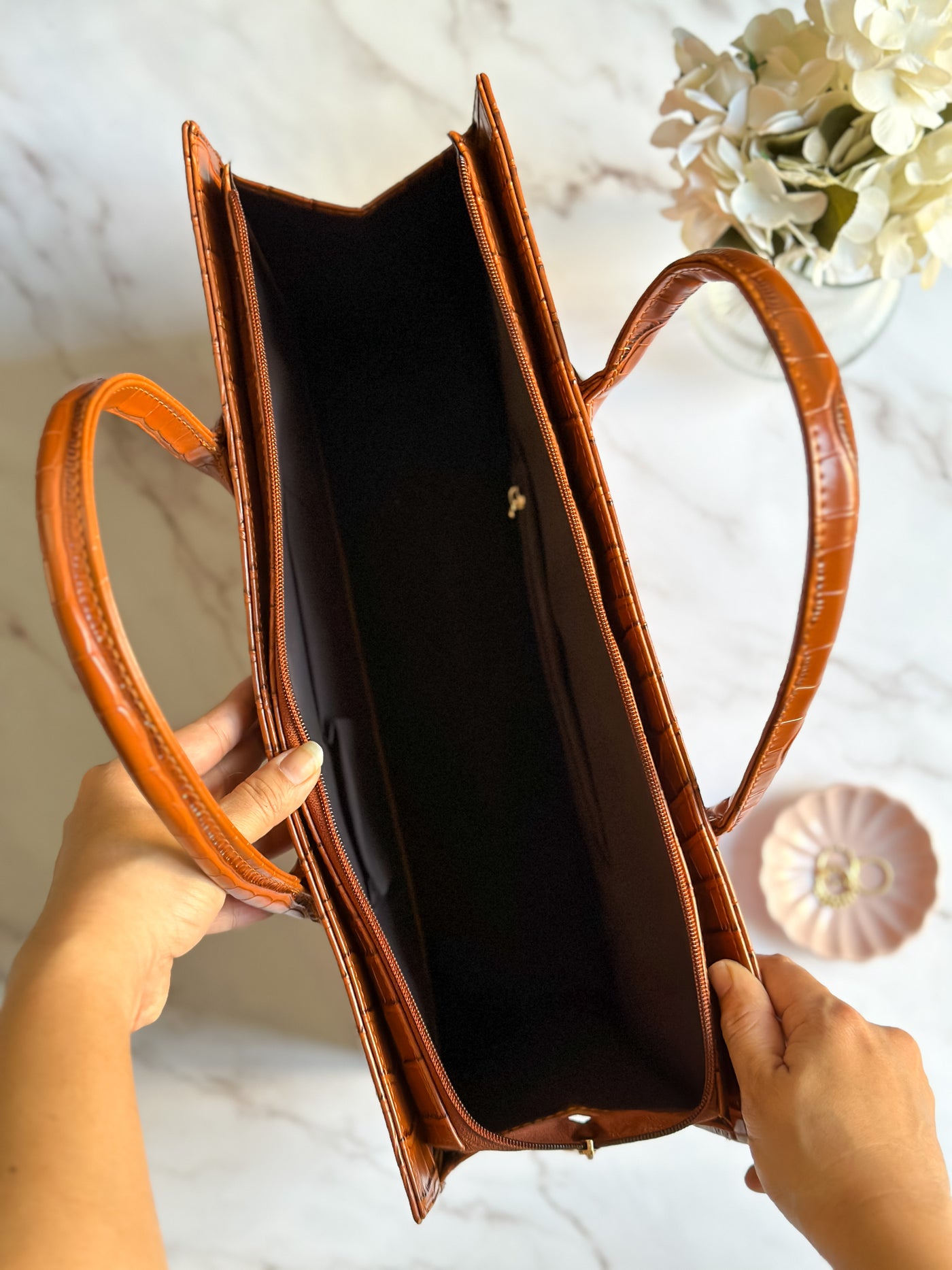 Croc Luxe Tote – Structured Work Bag – Brown