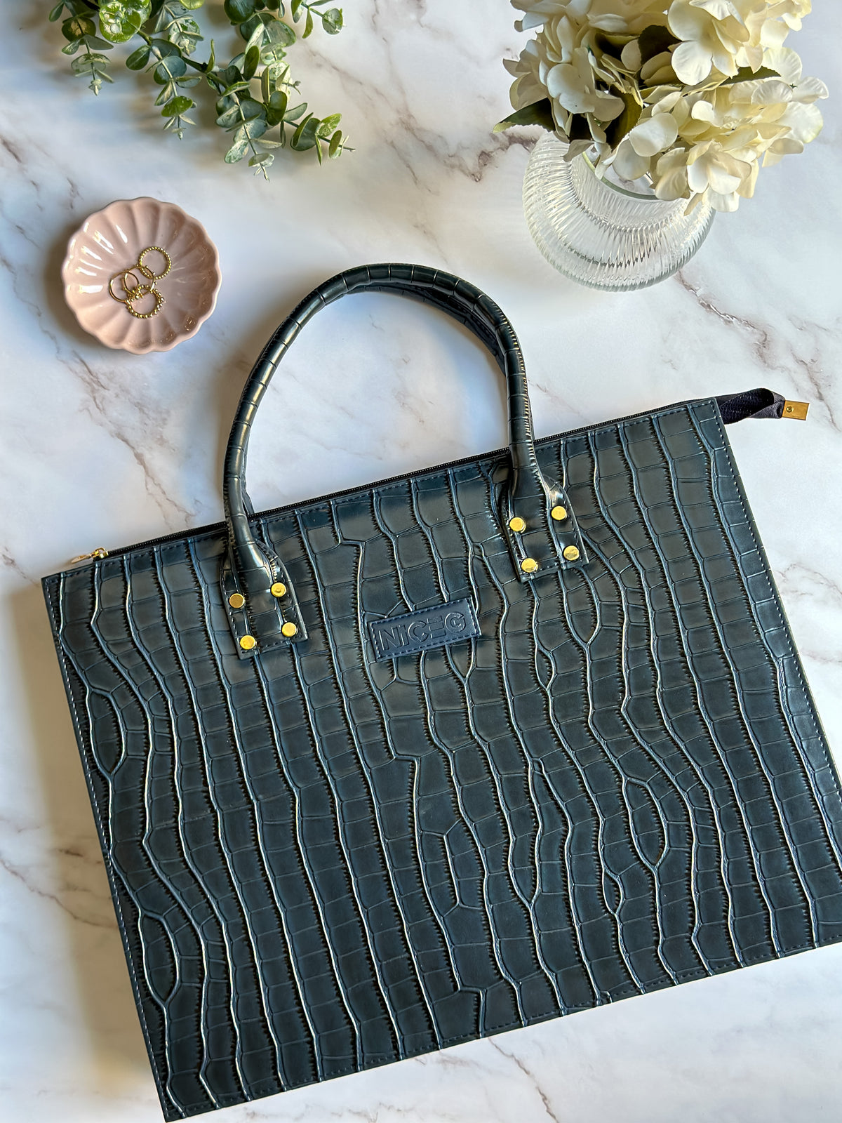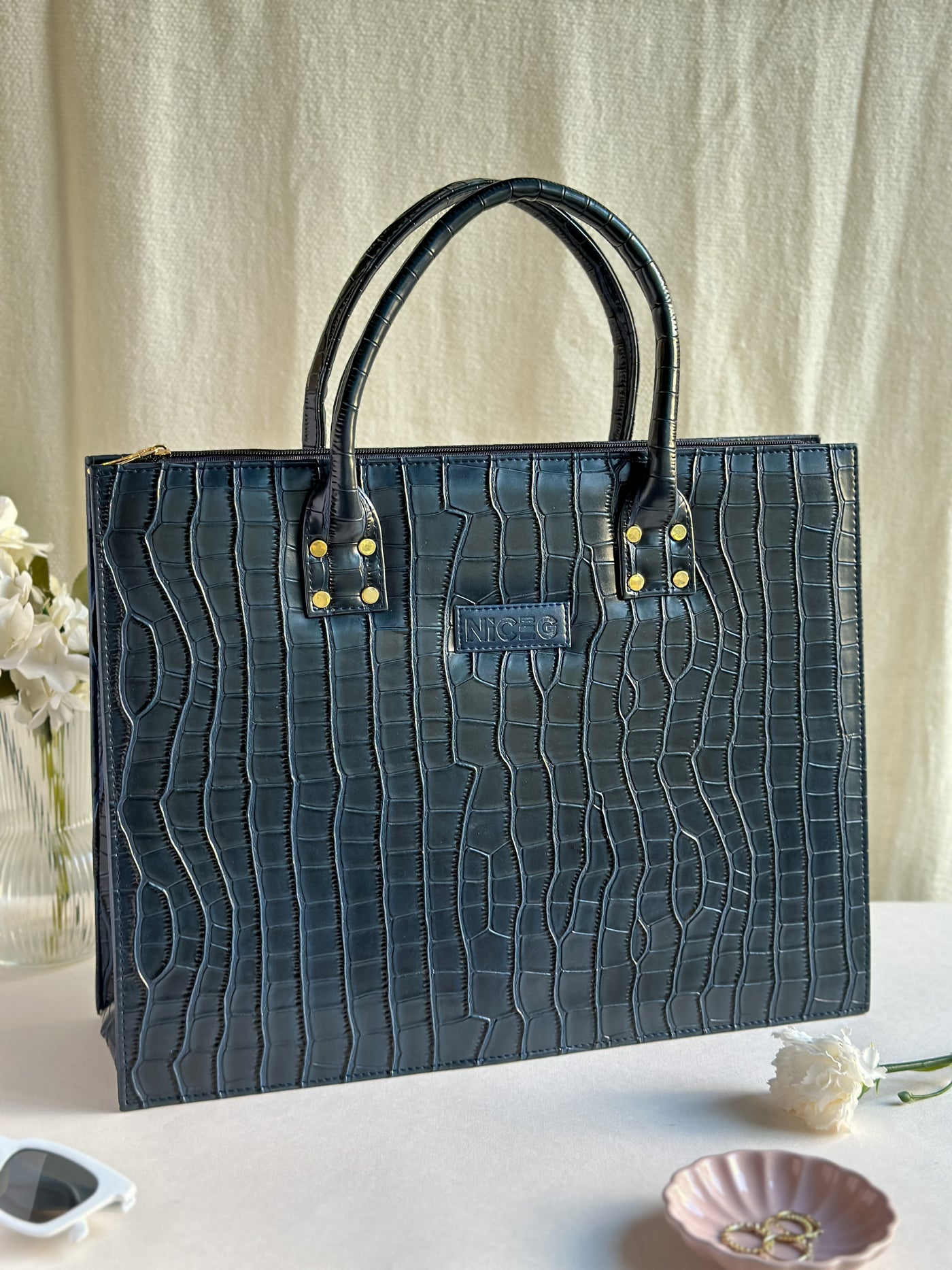 Croc Luxe Tote – Structured Work Bag – Navy