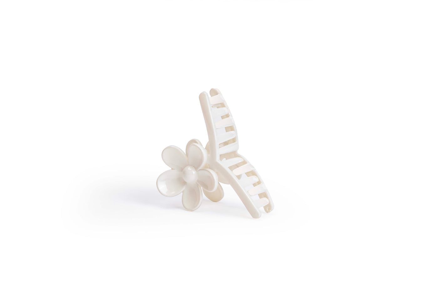 A playful flower-accent hair claw designed with smooth curved arms and a glossy finish. Crafted in a medium size, this claw offers a comfortable grip while adding a cheerful floral touch to everyday and casual hairstyles.