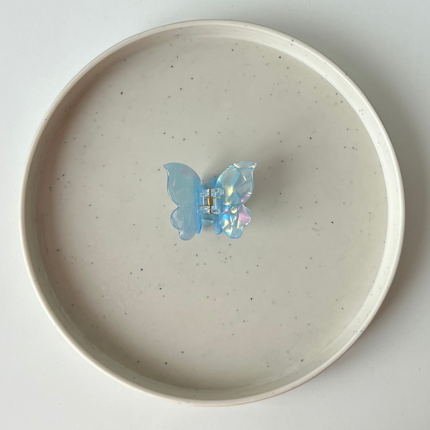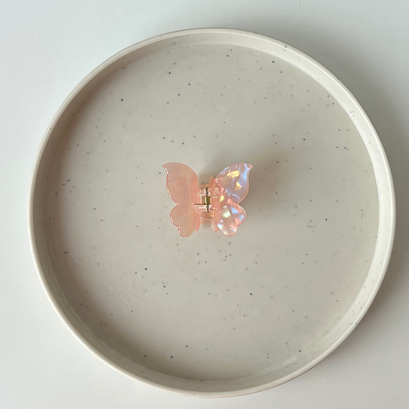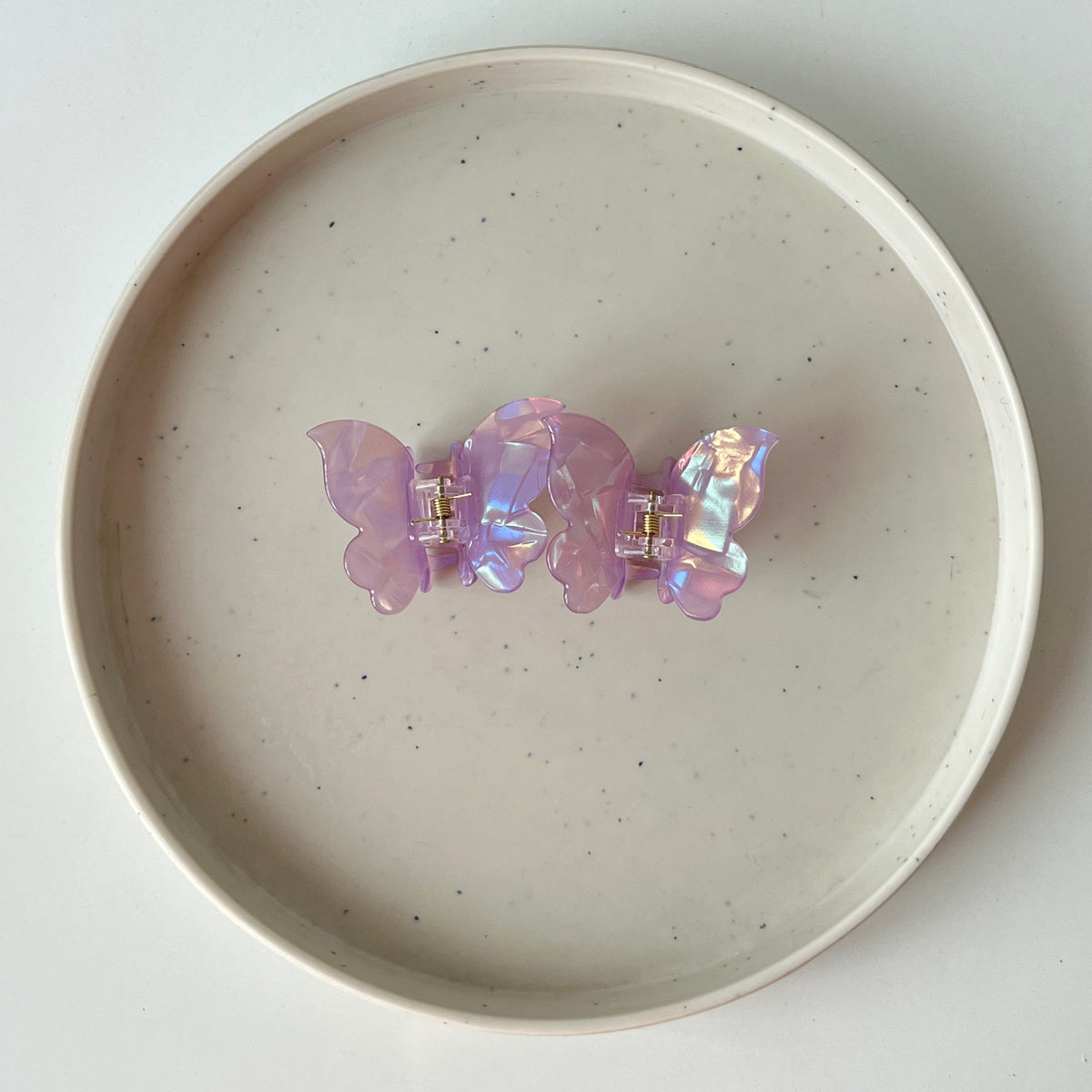 The Lustre Butterfly Hair Claw combines a delicate butterfly silhouette with an iridescent glossy finish, catching the light beautifully from every angle. Designed to hold hair firmly yet gently, it’s a charming pick for both everyday wear and special styling.