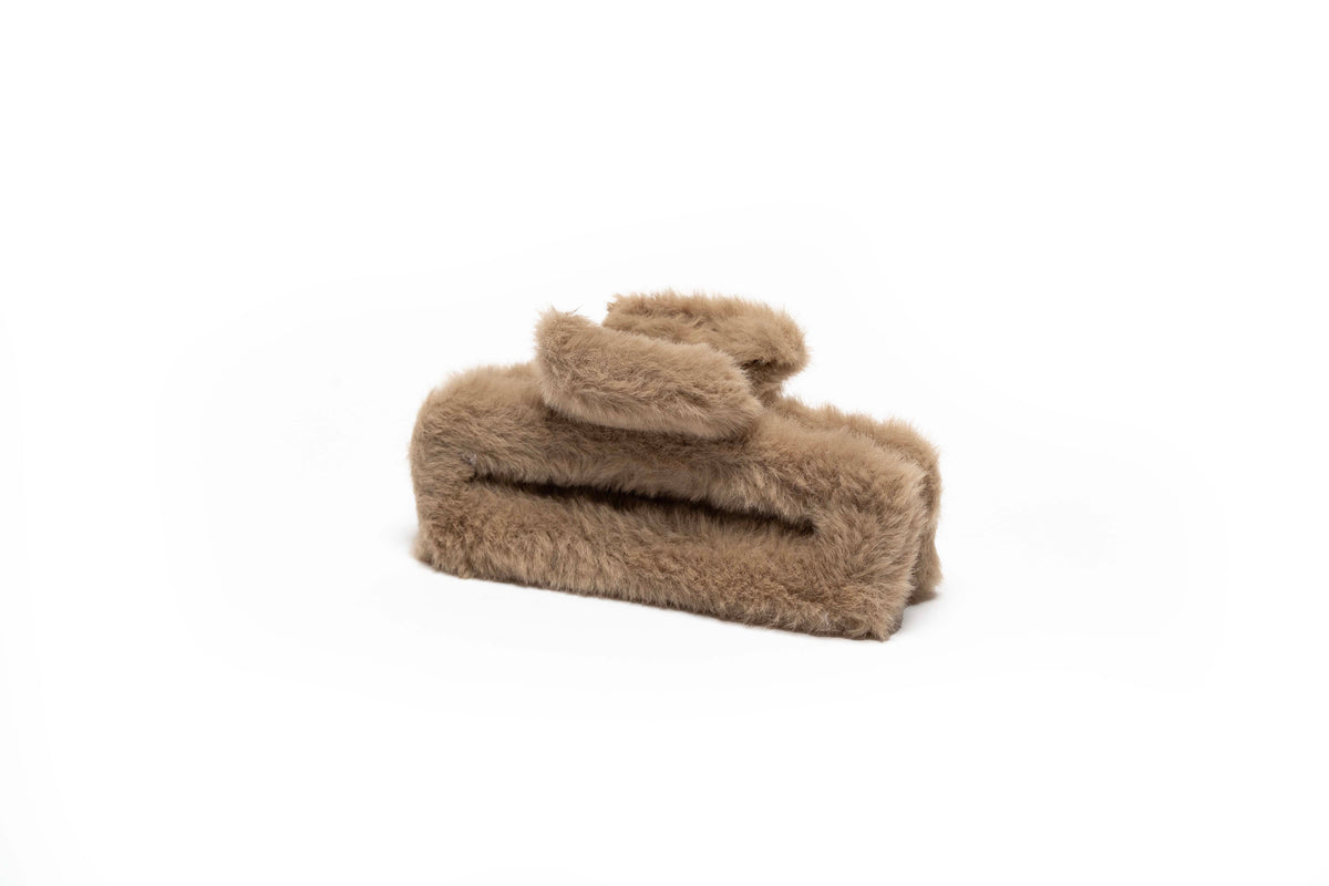 Plush Rectangle Hair Claw - Light Brown
