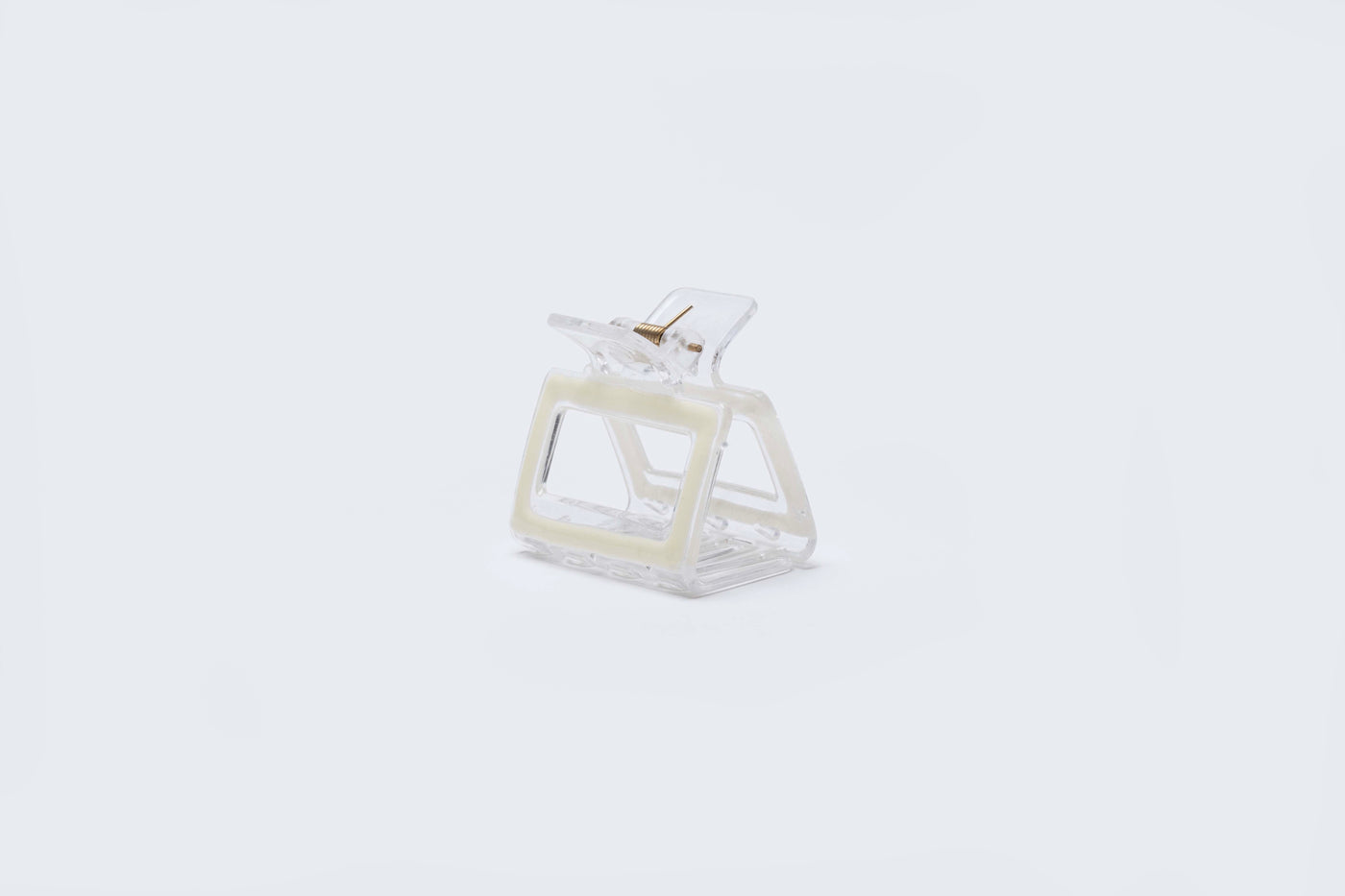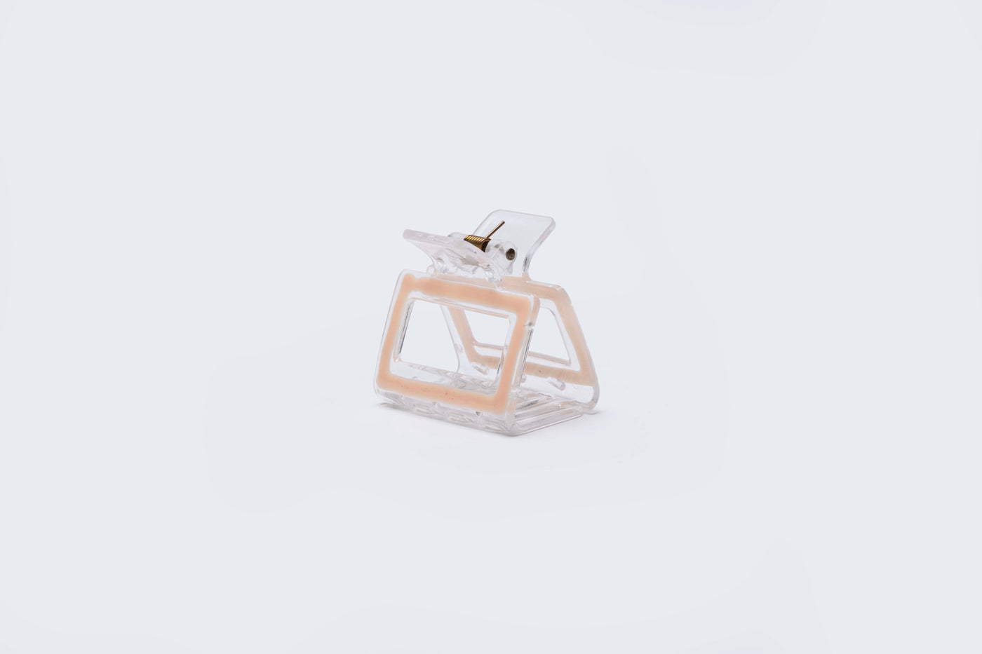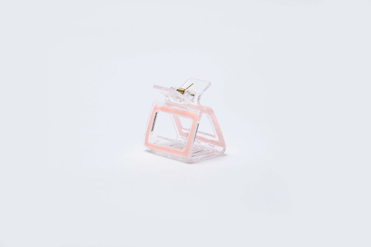 A modern rectangular hair claw crafted with a clear frame design and glossy finish. Featuring a structured open-center shape, this medium-sized claw offers a secure and comfortable grip while adding a clean, contemporary touch to everyday hairstyles. Ideal for casual wear, work, or minimal styling.
