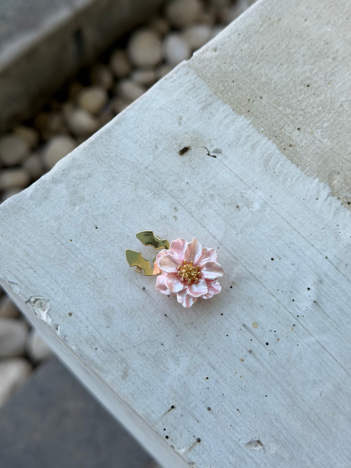 Roselle is a delicate floral button cover designed in a soft blush tone with intricate gold center detailing. Light, refined, and beautifully sculpted, it brings a subtle romantic accent to your blouse or shirt.